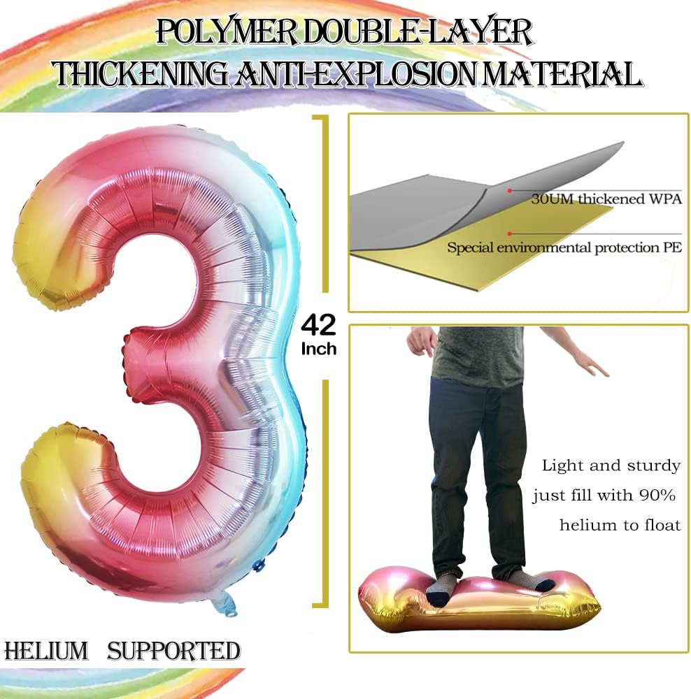 GOER 2 Pcs 42 Inch Rainbow Foil Balloons Number 3,Huge Number Balloons for 3rd 33rd Birthday Party Supplies Anniversary Decorations