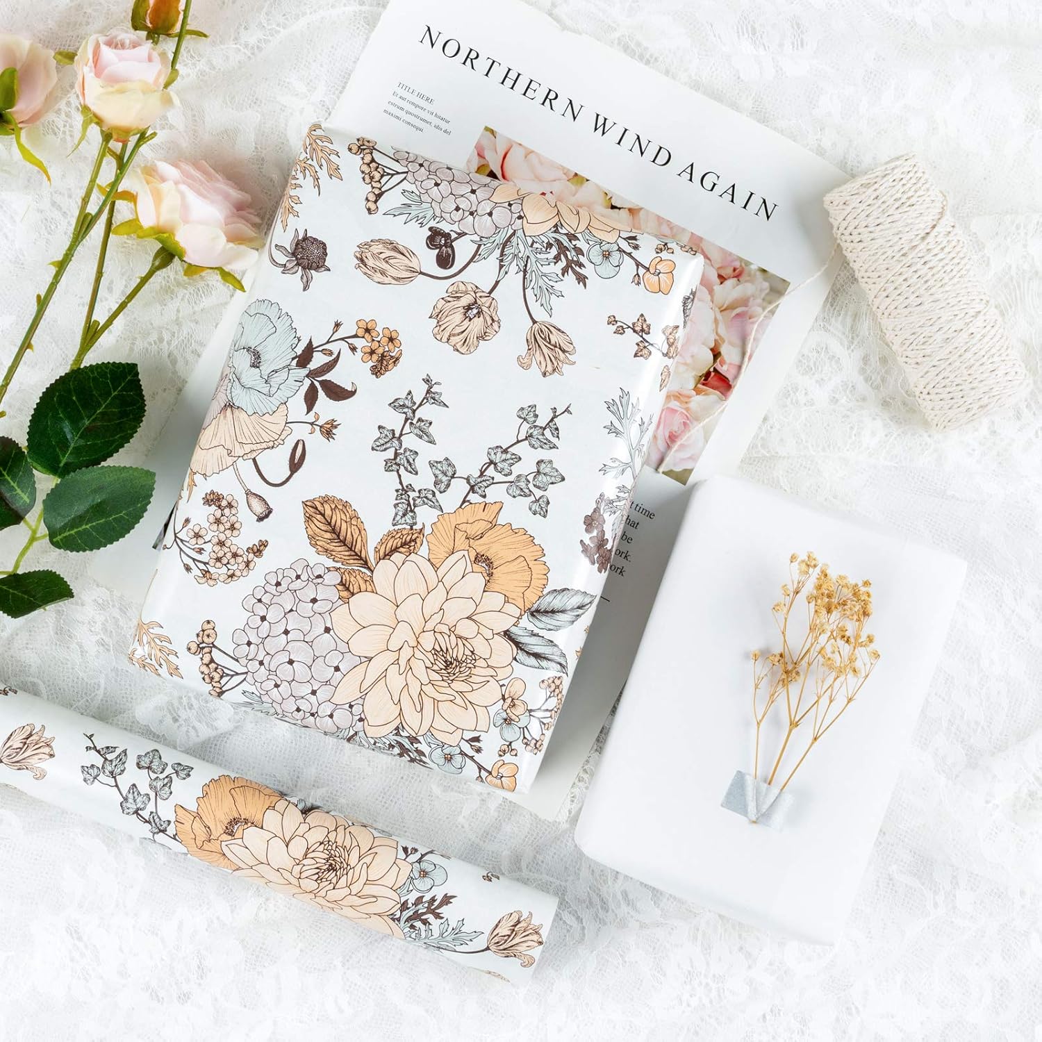 - ClASSIC PRINT: Beautiful vintage floral printed on white pearlized paper.The kind of flower design will make your gift noble.We are sure when you receive it, you will compliment on how pretty they are!