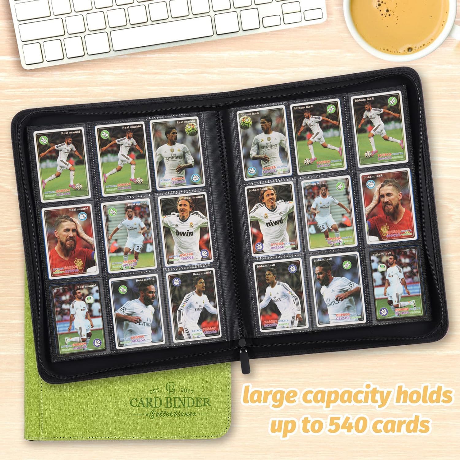 Trading Card Binder, Card Collection Binder Album Folder with 540 Side Loading Pockets, 9 Pocket Trading Card Album Folder for TGC,MTG, Baseball Cards, Yugioh(Green)