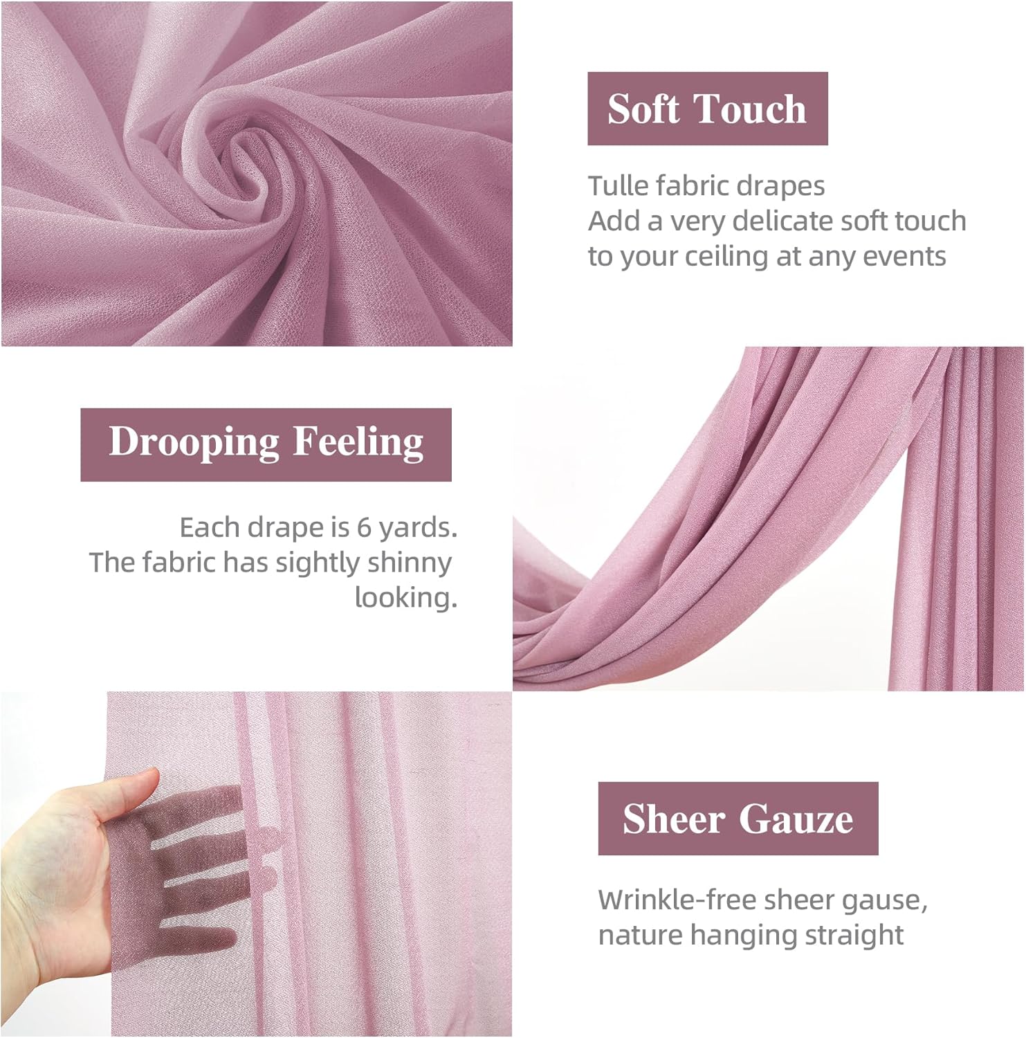 - Premium Wedding Arch Draping Fabric: These Sheer Drapes are made of 100% wrinkle-free tulle fabric, touch silky soft and looked romantic elegant, used sturdy and reusable . Whenever you use these scarf curtain, they can always keep smooth and flat.