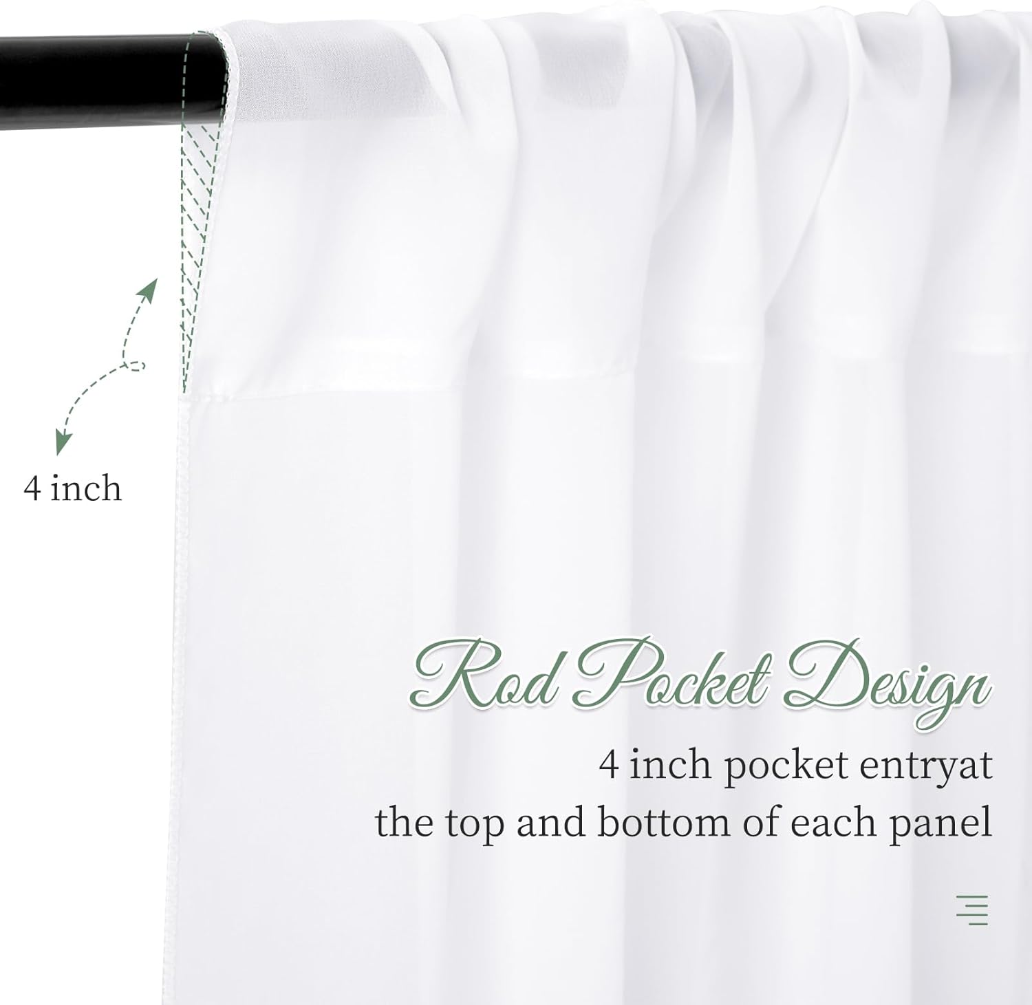 - 🍸Romantic Sheer Arch Drapes: The wedding ceiling curtains are finished with firm and exquisite stitching in all margins, which are airy and lightweight; here is a 4 inches pocket for rod or pole entry at the top and bottom of each panel creating beautiful draping. This sheer ceiling is also called as wedding decorations for ceiling, chiffon draping, tent draping fabric for wedding, event draping fabric, wedding wall covering, white stage curtains, etc.