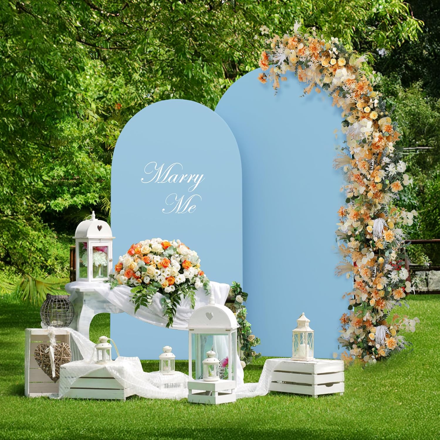 - Round Top Arch Cover: These backdrop covers are made of 85% polyester and 15% spandex. Color: dusty blue. Size: 6ft x 2.6ft (HxW) and 7.2ft x 4ft (HxW). The Chiara arch stand cover is designed with a round top. Placed in the garden lawn, it perfectly matches the arched background frame. Thus, it can better decorate your gatherings and ceremonies and add a festive atmosphere. 𝐍𝐨𝐭𝐞: 𝐚𝐫𝐜𝐡 𝐟𝐫𝐚𝐦𝐞 𝐧𝐨𝐭 𝐢𝐧𝐜𝐥𝐮𝐝𝐞𝐝