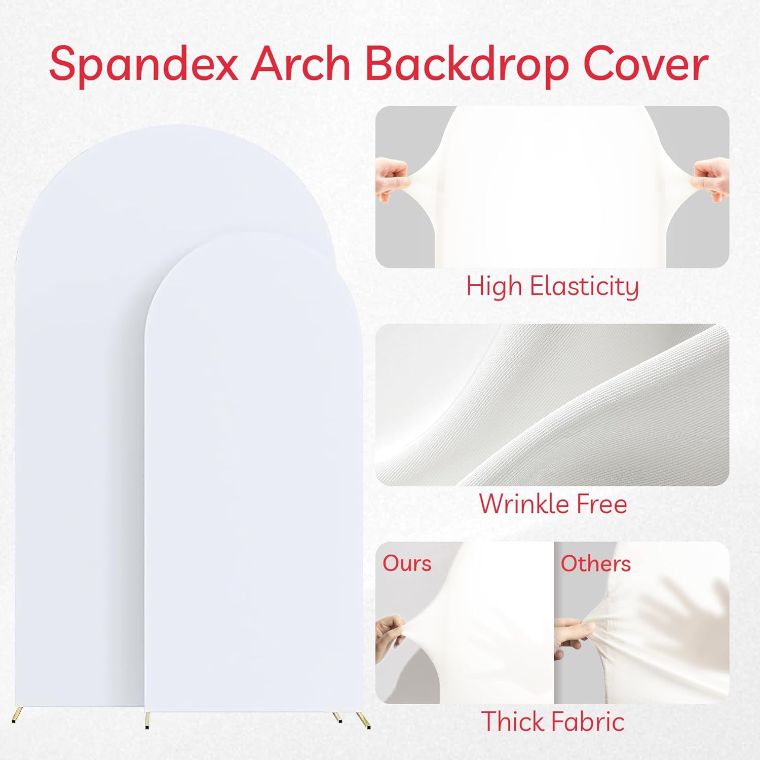- High Elasticity Opaque Fabric Covers: The double-sided arch backdrop cover will perfectly showcase your background decoration. The fabric of the background cover is elastic and can stretch 360 degrees in all directions, perfectly fitting any arch shape without any wrinkles; From any angle, the surface is smooth and clean, allowing you to enjoy the fun of the party happily
