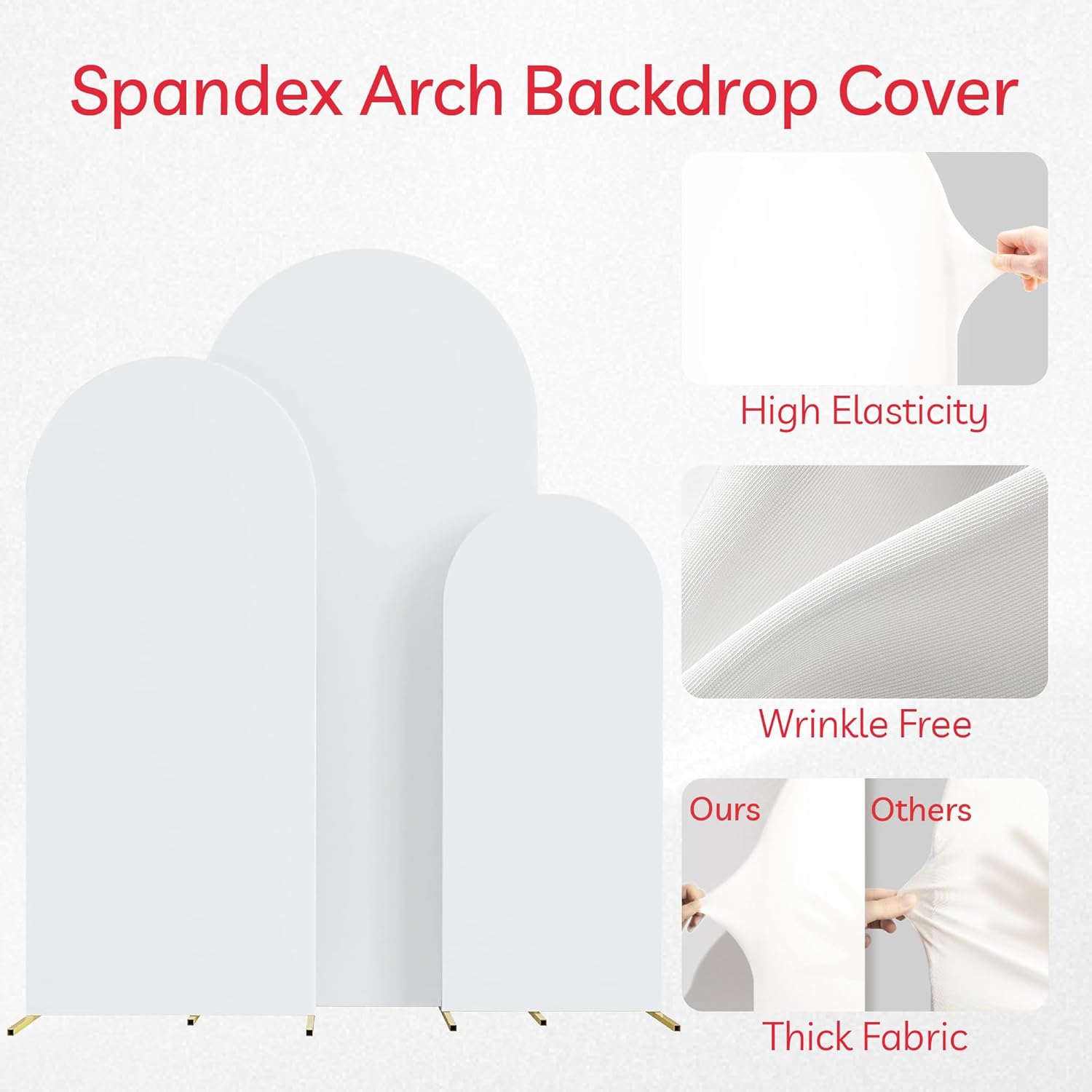 Spandex Anti Wrinkle Arch Backdrop Cover - High Elastic Fitted Arch Stand Cover Set of 3, White Round Top Chiara Backdrop for Wedding Birthday Party Garden Decor 6Ft, 6.6Ft, 7.2Ft