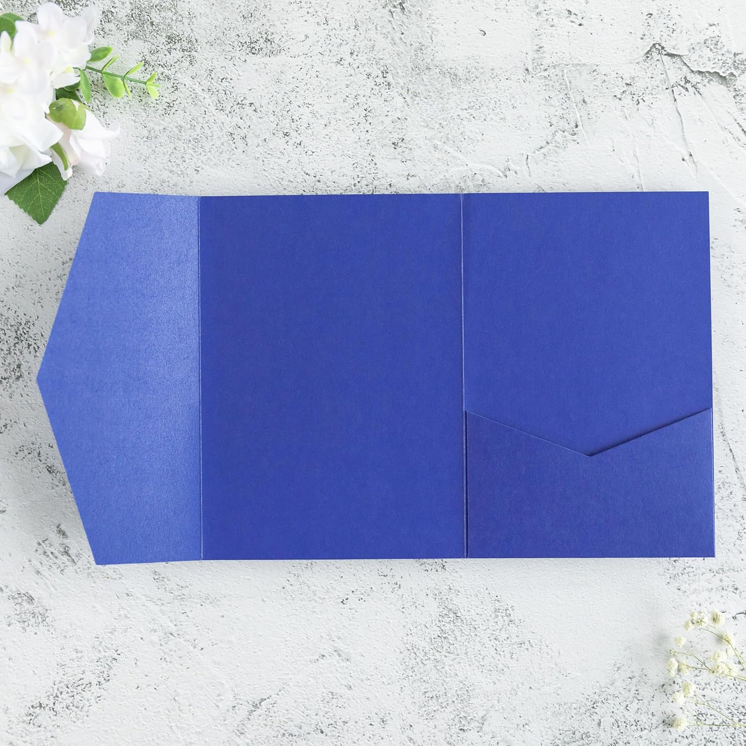 - HIGH QUALITY -- The royal blue tri-fold invitation pockect is made from 250 gsm thick paper, Very good quality and heavy, not easily deformed, Look simple and elegant