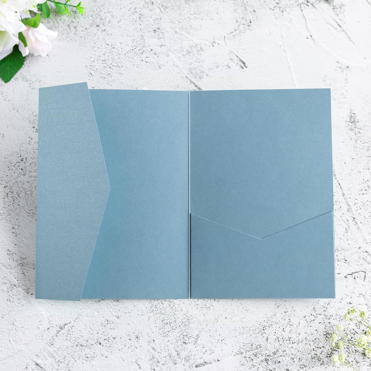 - PACKAGE -- This item only include 20 pcs pearl dusty blue invitation pocket, You can match the insert and RSVP card to your liking