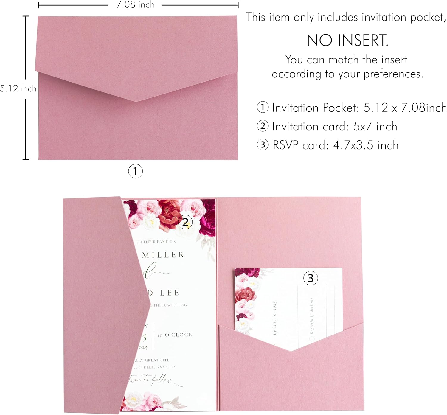 - HIGH QUALITY -- The dusty rose tri-fold invitation pockect is made from 250 gsm matte paper, Very good quality and heavy, not easily deformed, Look simple and elegant
