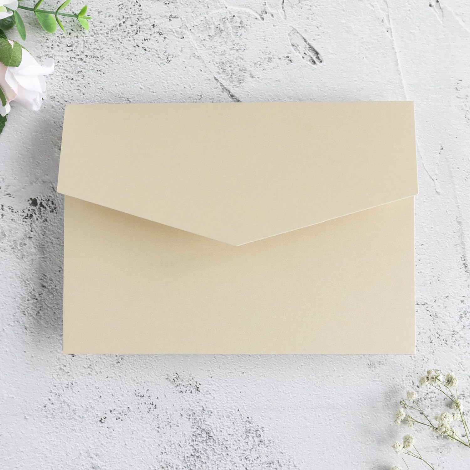 - SIZE -- Invitation pocket 5.12 x 7.09 inch. On the left side of the invitation pocket, you can match the 5*7 inch inner sheets. On the right side of the invitation pocket, you can match detail cards or RSVP cards with a max size of 4.6*7 inner sheets. Envelopes not include. (Please ensure your envelopes is large than 5.31x 7.5 inches, order A8, A9 size envelopes is large enough )