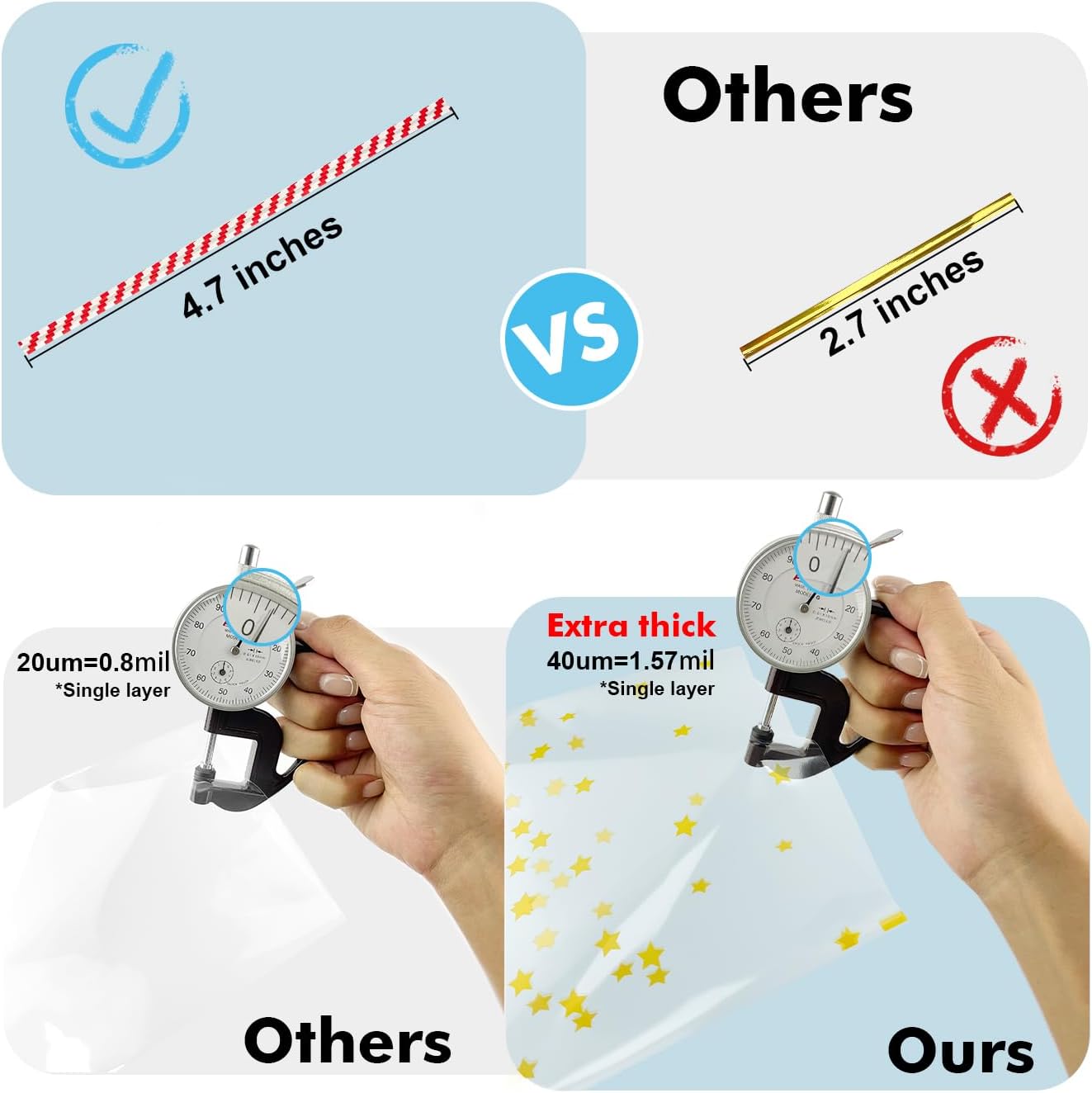 - 【Extra-Long 4.7-Inch Twist Ties for Secure Closure】: Each set includes extra-long, 4.7-inch red and white or gold twist ties, longer than the standard 2.7-inch ties. This ensures a secure closure, especially suited for holiday packaging like Christmas. For a personalized touch, you can add your own ribbons for DIY projects.
