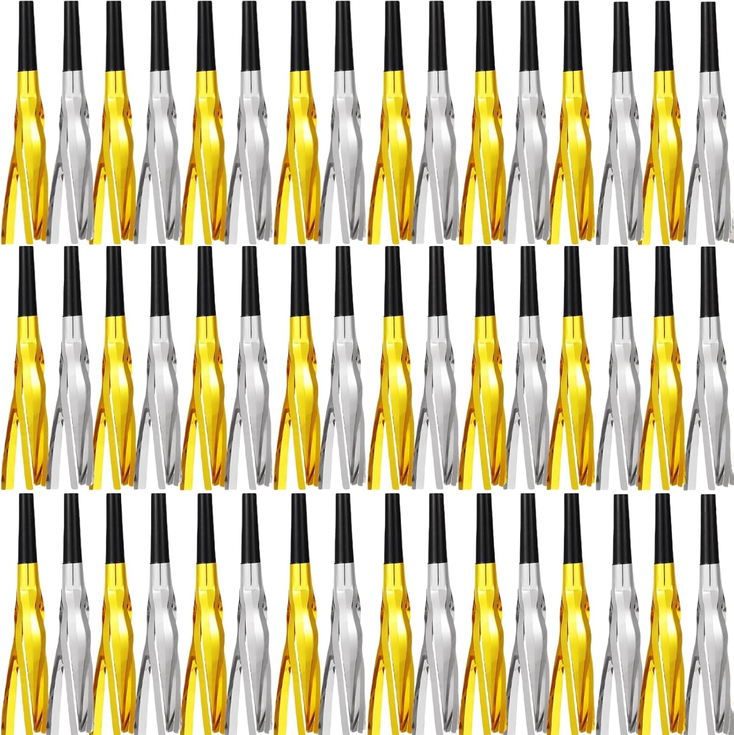 Metallic Fringed Noise Makers, 48 Pcs, Gold, Silver, for Noise Makers Party Favors, Baby Shower, Kids Birthday, New Year Party