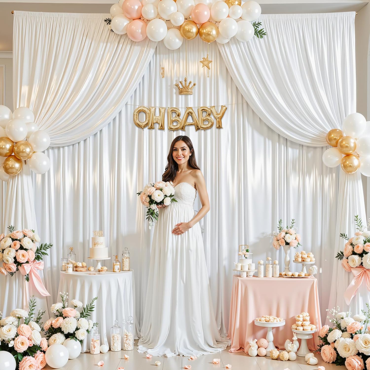 - 【Wide Compatibility】This 10ft tall white backdrop drapes are perfect for kinds of occassions. Such as baby showers, bridal showers, birthday parties, weddings, graduation ceremonies, dessert tables, anniversaries, stages, ceremony, receptions, YouTube, photo studio, Halloween, Christmas, New Year's Eve parties, daily use, and other special decorations.
