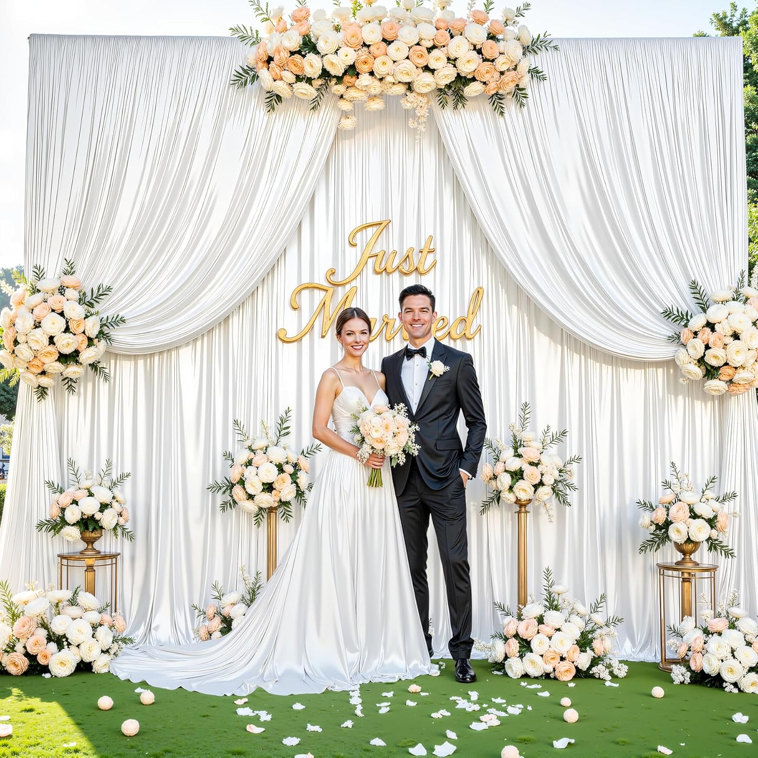 - 【Satin Backdrop Curtain】Our 10x10ft white glitter backdrop curtain panels are perfect for adding a touch of glamour to any event. Made with thick, high-quality shiny satin fabric, they shimmer beautifully without losing sequins, ensuring a stunning display. Each set includes two 5x10ft panels, providing ample coverage for weddings, parties, or photo shoots.