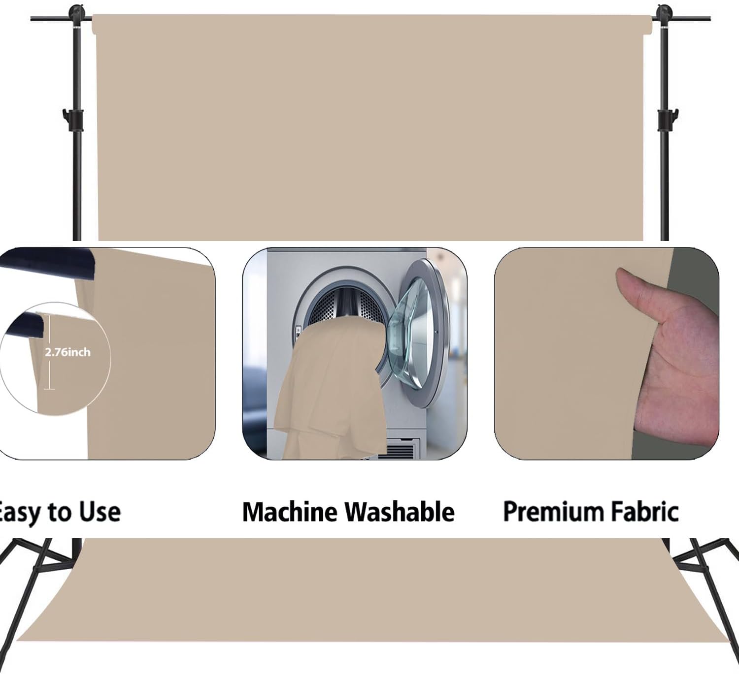 - Excellent quality: This beige photography backdrop is made of polyester fiber, soft and non-reflective fabric, can be ironed, durable, and all edges have good locking seams to prevent tearing.Please note: This package does not include background brackets or clips.