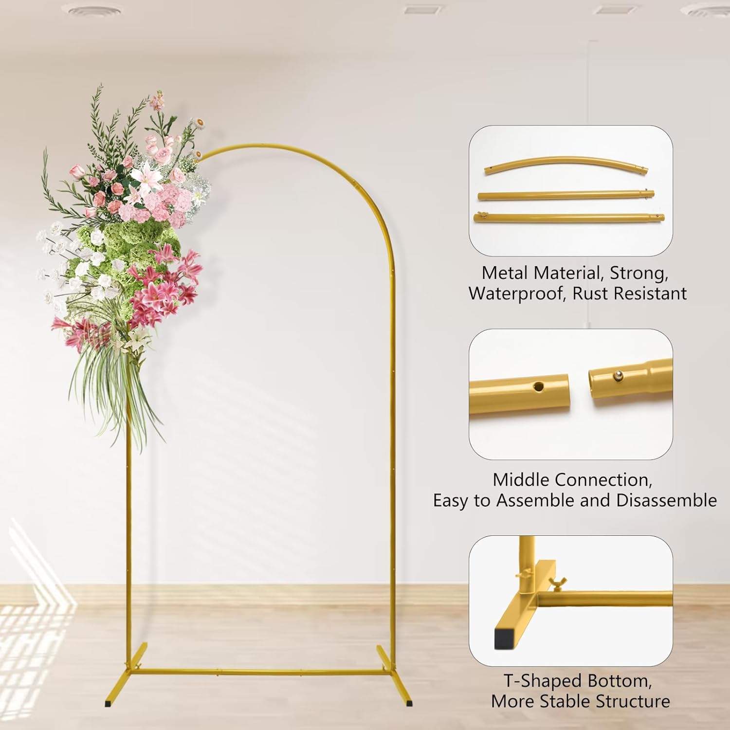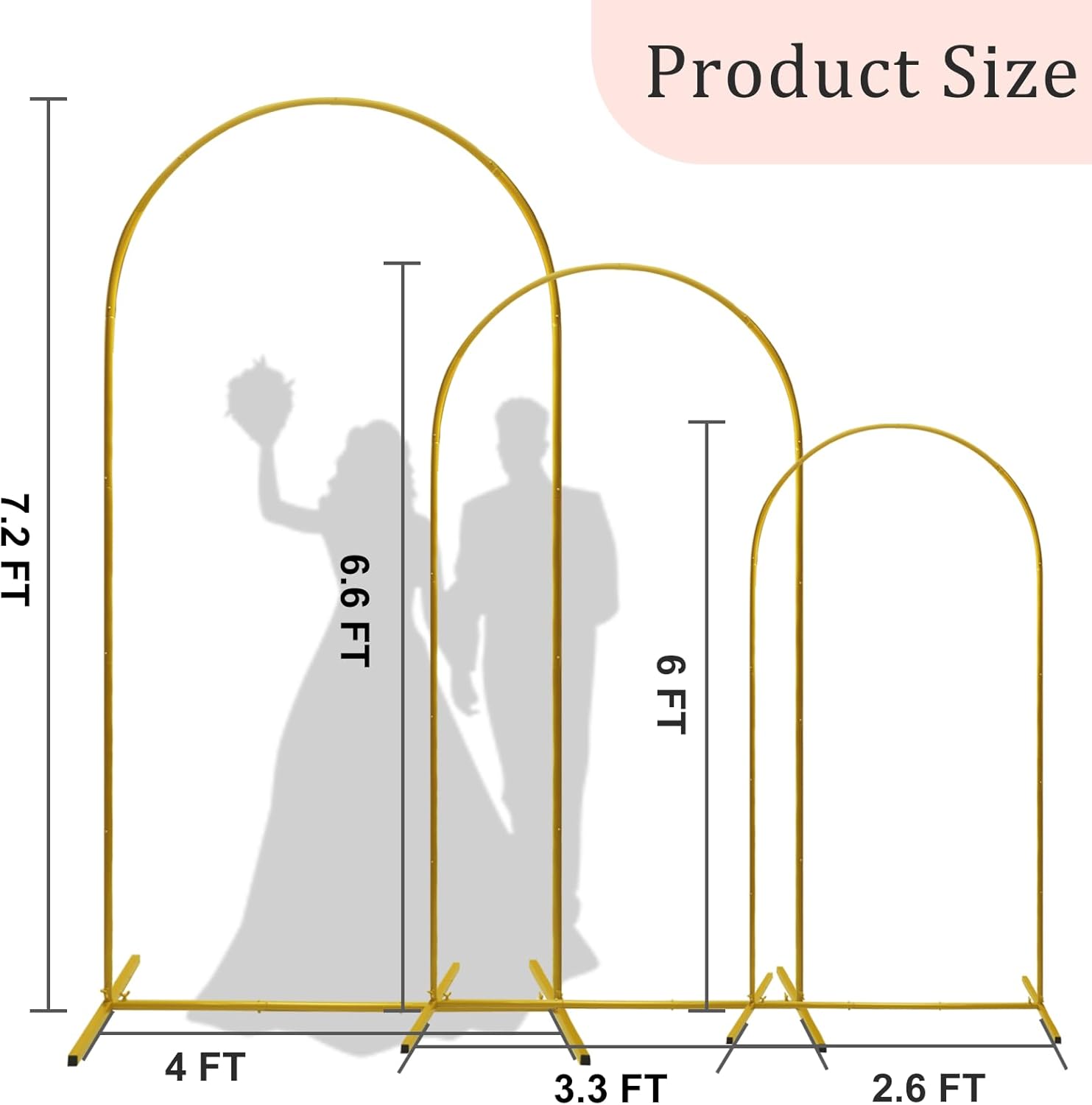 U+U Arch Backdrop Stand Set of 3, Gold Arch Stand for Wedding Birthday Party Bridal Baby Shower Balloon Arch Decoration (7.2FT, 6.6FT, 6FT)