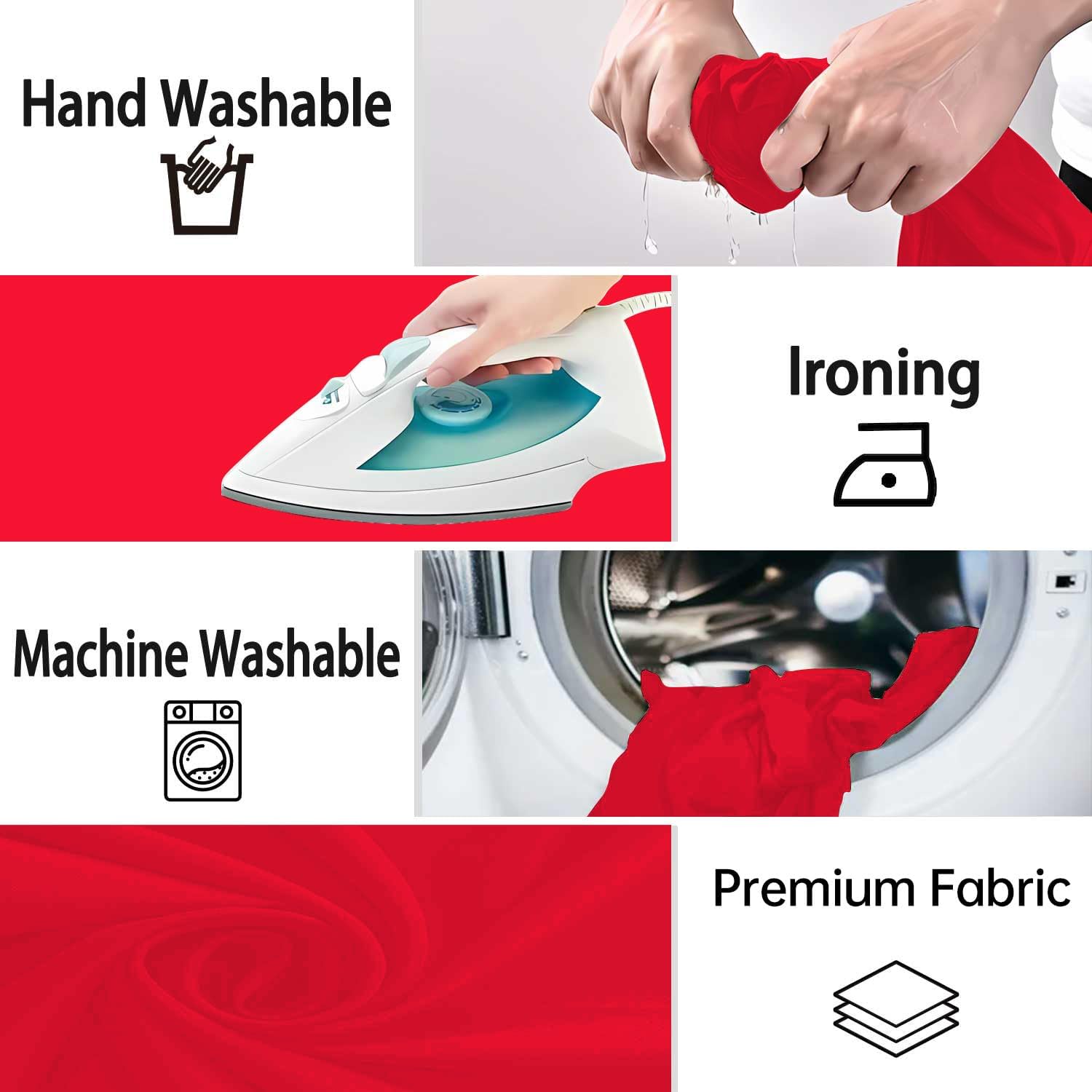 - Machine Washable: The red backdrop material is durable, can be washed by hand and can be washed in the washing machine, please lay flat or hang to dry after cleaning. If necessary, iron the surface with a steam iron.