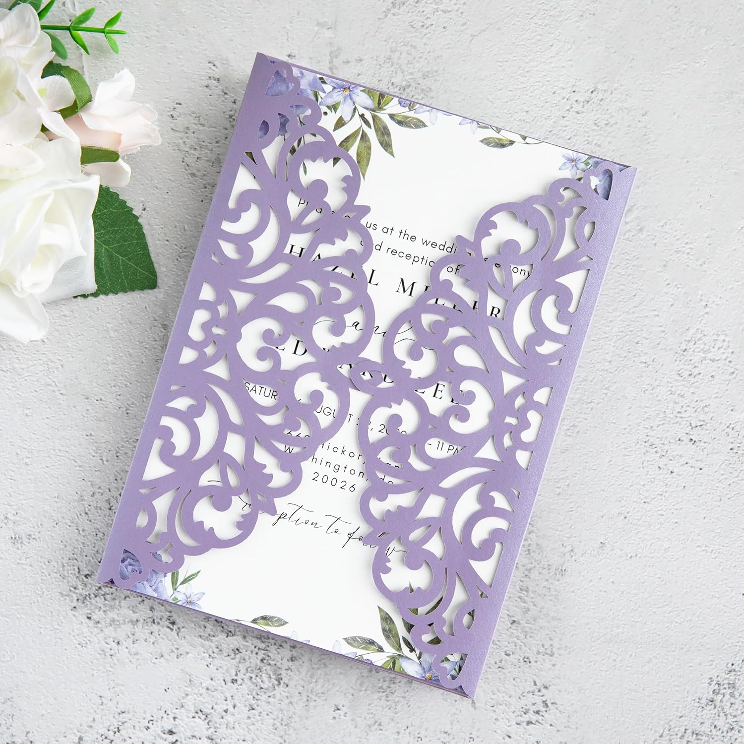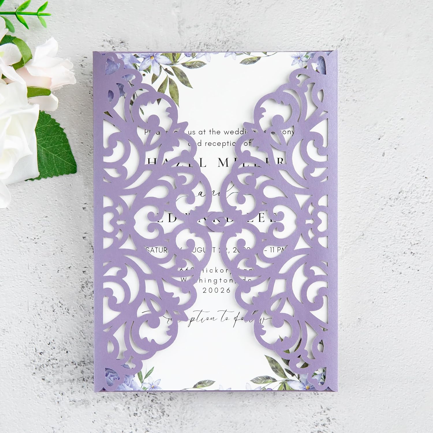 20Pcs Lilac Laser Cut Invitation Cards With Blank Inner Sheets for Wedding Cards Bridal Shower Engagement Quinceanera Invitation (No Envelopes)
