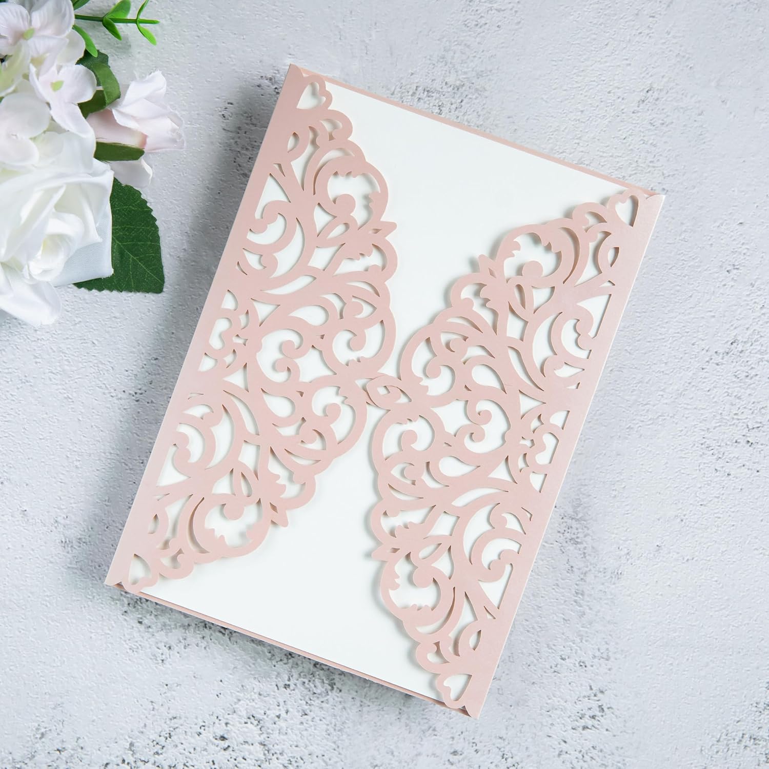 20Pcs Blush Pink Laser Cut Invitation Cards With Blank Inner Sheets for Wedding Cards Bridal Shower Engagement Quinceanera Invitation (No Envelopes)