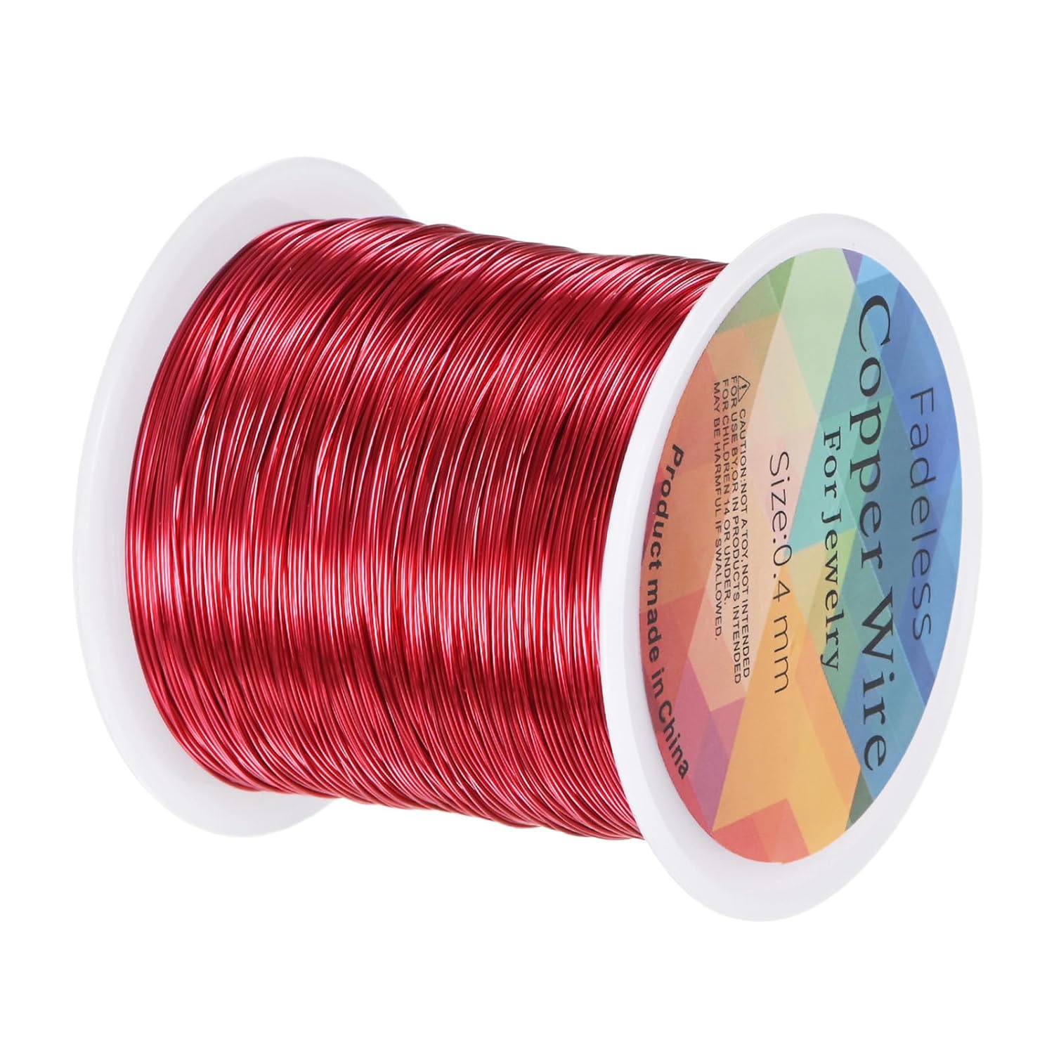 0.4mm Jewelry Wire, 26 Gauge 328FT Craft Wire Copper Beading Wire for Jewelry Making/Planting/Weaving/DIY Crafting, Soft Metal Wires [100M, Red]