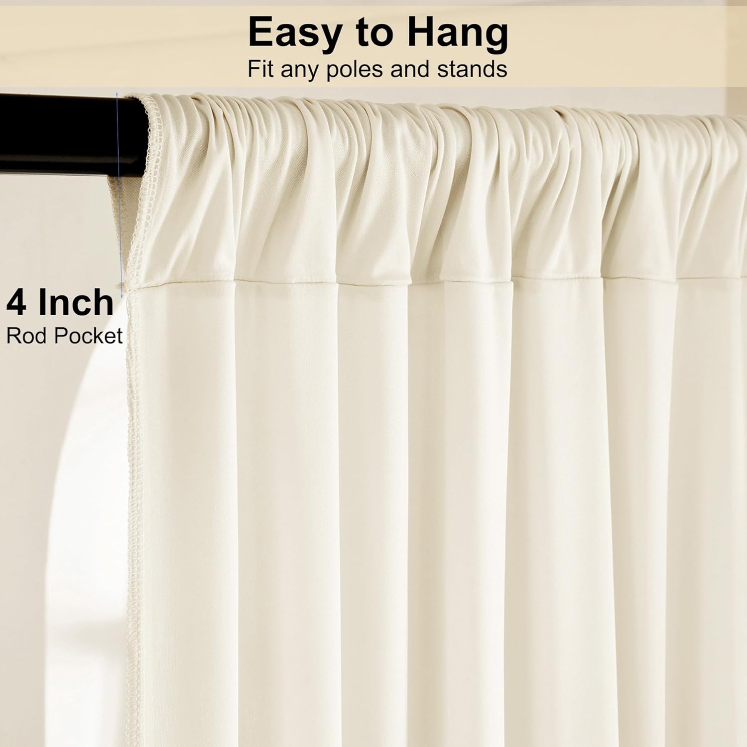 - Easy-to-hang rod pocket design (4-inch Pocket) - Enables quick installation for stage backdrops, theater backdrops, ceiling drapes for weddings and photo backdrops for photography, saving time while ensuring professional-grade displays ivory drapes for backdrop.