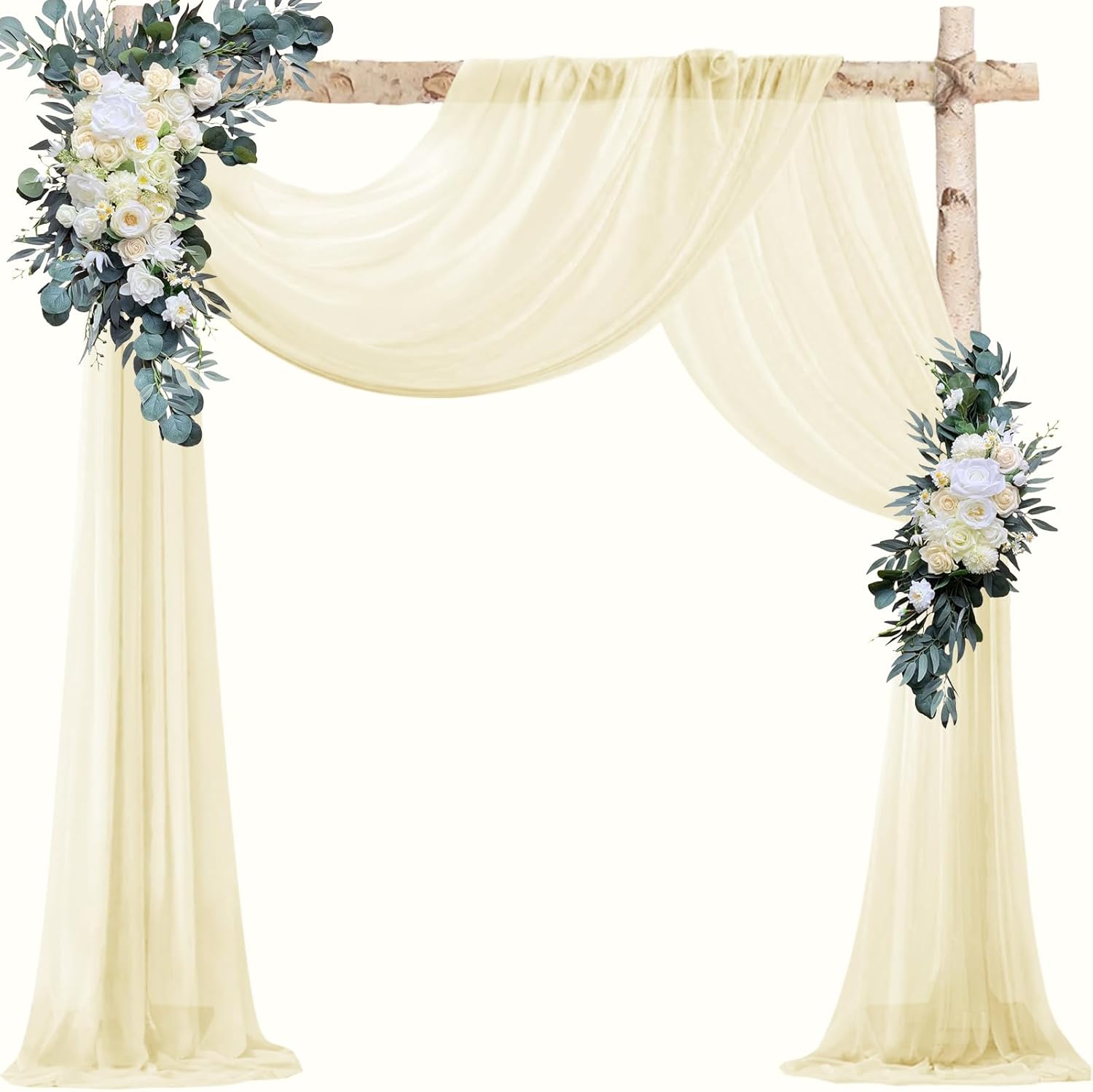 VOK Wedding Arch Draping Fabric Chiffon Curtains, 29in x 18Ft Sheer Chiffon Outdoor Curtain for Wedding Ceremony Birthday Party Decoration (Light Yellow,4 Panel)